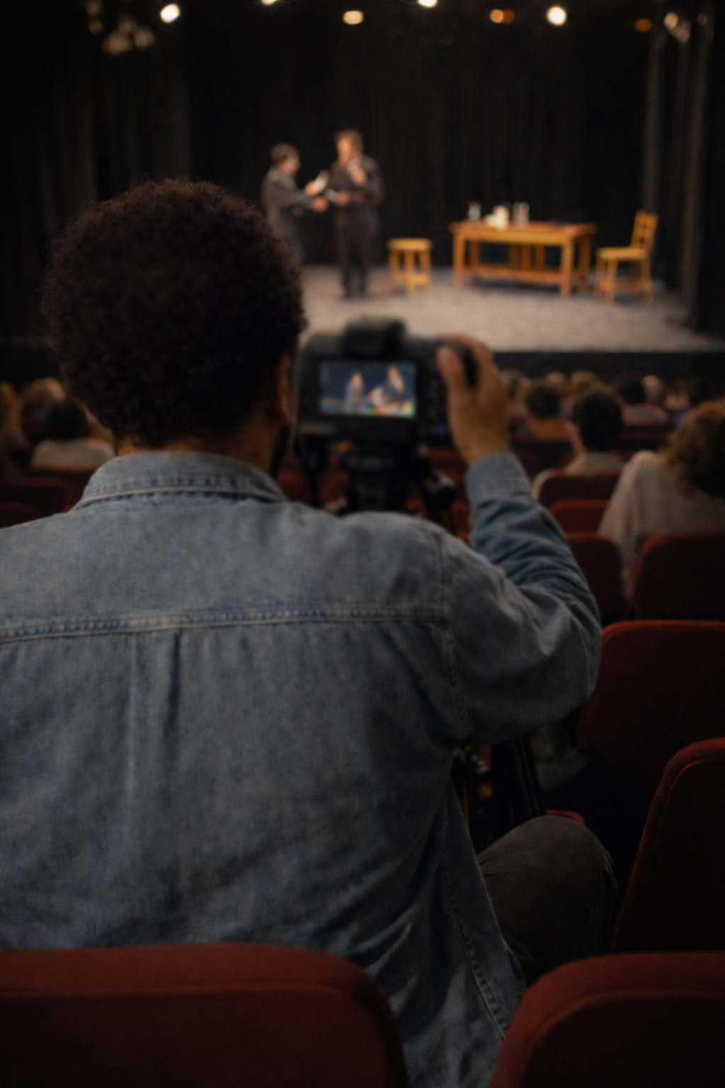 Tournage d’une représentation avec 2 caméras. Prise de son via la régie, avec 3 micros sur scène.